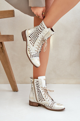 Boots En Cuir Ajouré Nicole 2627 Blanc-Argent