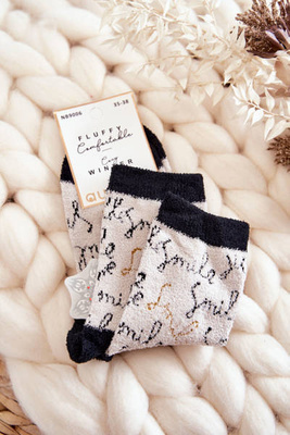 Chaussettes chaudes femme à motifs beige et noir