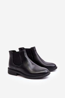 Bottines En Cuir Pour Femme À Talon Bas Zazoo 4111 Noir