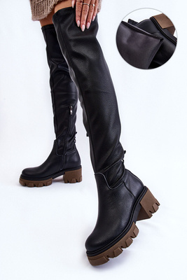 Bottes en cuir à la mode pour femmes au-dessus du genou noir Venise