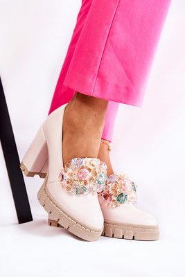 Chaussons Pour Femmes En Cuir Avec Perles Décoratives Beige Lasello