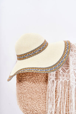 Chapeau Femme Avec Une Bande Noire Beige Marsela