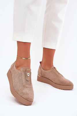 Chaussures à Talon Plat Femme En Suède Écologique Beige Foncé Aviara