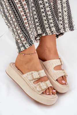 Sandales Femmes Sur Plateforme Avec Boucles Et Tressage Beiges Limme