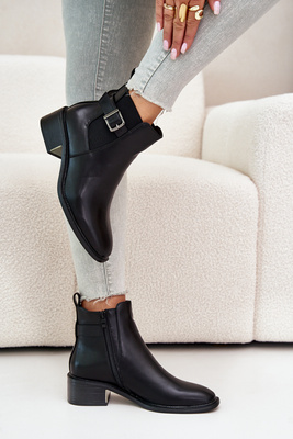 Bottines Femme À Talon Bas Et Boucle Dorée Noir Vomera