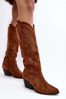 Bottes Cowboy Femme Botki Sur Talon Beige Foncé Danell