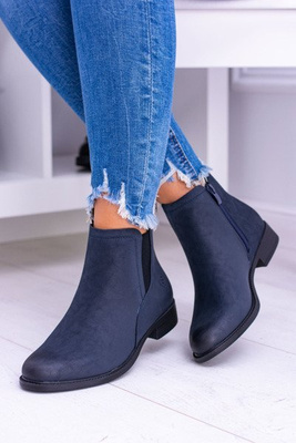 Sergio Leone Bottes Aiguilles En Nubuck Bleu Marine Talon Plat Vuko