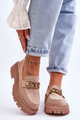 Mocassins Plateformes En Daim Pour Femme Beige Larey