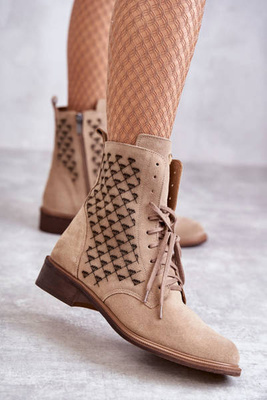 Boots à lacets en daim Nicole 2751 Beige