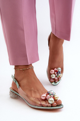 Sandales transparentes à talons bas et décoration verte D&A MR38-368