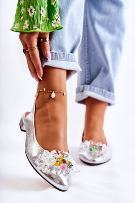 Bőr balerinák magassarkúban ezüst Elena díszítéssel