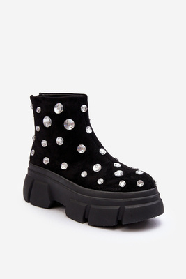 Bőr nubuk bélelt bokacsizma kristályokkal D A MR52-205 Fekete Botki Damskie