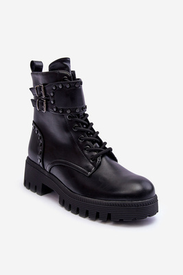 Női vaskos csizma dolgozók strasszokkal, fekete Tyralis