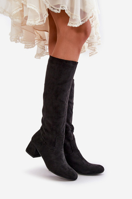Fekete, térd feletti női csizma vaskos sarkú Fatumával