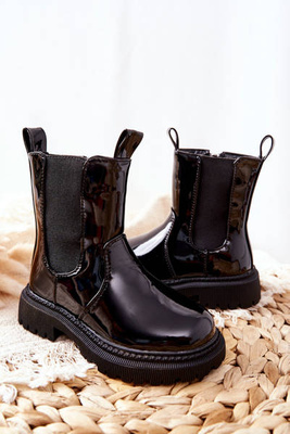 Meleg gyerekcipő Patent Fekete Ammy cipzárral