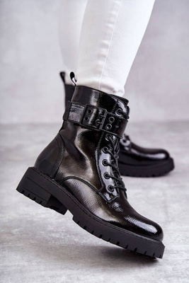 Lakkozott meleg fűzős csizma Fekete Enrica