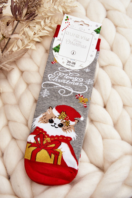 Női ünnepi zokni 3 csomagos szürke-rózsaszín