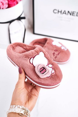 Gyermekházi papucs medveporral, rózsaszín, iskolába