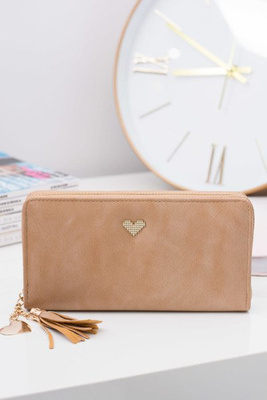 Bézs színű női nagy pénztárca kulcstartó arany szív