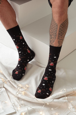 Férfi karácsonyi pamut zokni fekete rénszarvasokkal