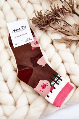 Női 2 csomagos térd-magas zokni fukszia-barna