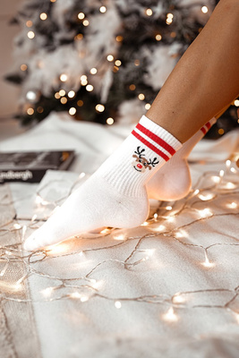 +1Karácsonyi zoknik rénszarvas csíkkal fehér