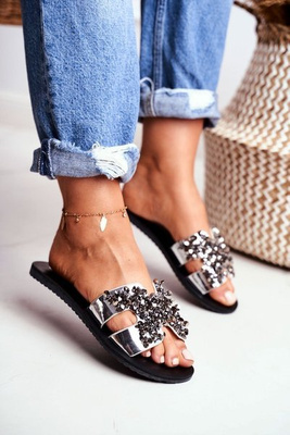 Fekete női papucsok Lu Boo nagy rózsaszín floppy Cocards floppy