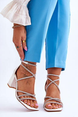 Bőr szandál strasszokkal Heels Beige Carlotta
