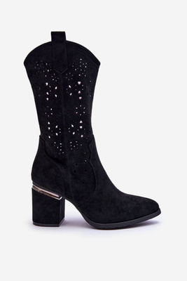 Női velúr perforált cowboy csizma fekete S.Barski HY42-086