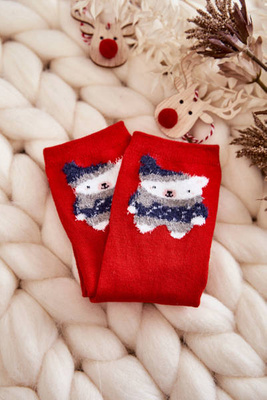 Gyermek karácsonyi zokni Bear Cosas piros-sárga