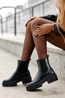 Bőr bokacsizma vastag talppal, fekete Apetrius