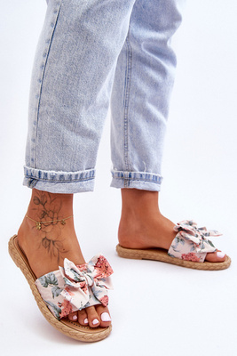 Női papucs masnival, bézs virággal