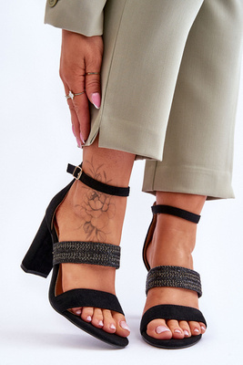 Velúr szandál fonott sarokpánttal, fekete Roselia