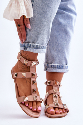 Női bőr szandál nagy szegecsekkel, meztelen Mishigan