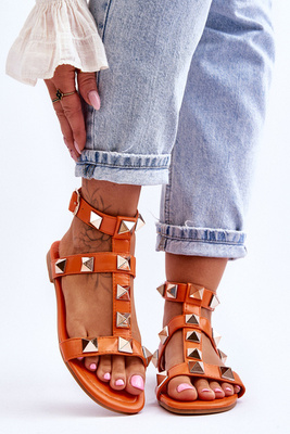 Női bőr szandál nagy szegecsekkel Narancssárga Mishigan