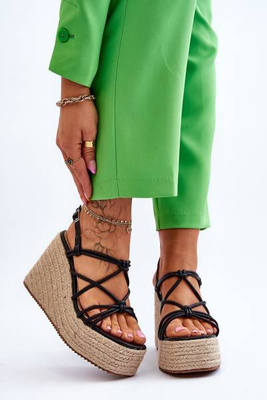 Velúr Espadrilles Wedge Sandals Black Cammer
