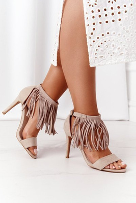 Velúr magassarkú szandál rojtokkal bézs Boho Swing