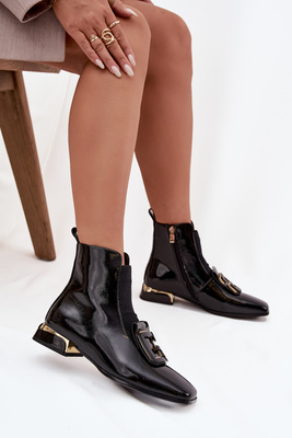Bőr Lakkozott Női Bokacsizma Alacsony Sarkú Díszítéssel D&A MR52-216 Fekete