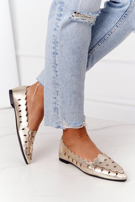 +10Női bőr balerinák Maciejka bézs-arany 01930-81