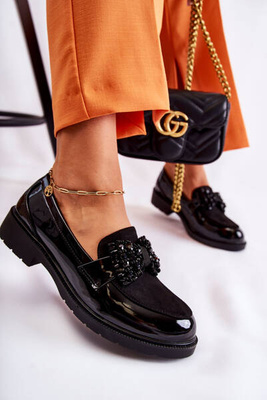 Lakkozott bőrből készült női félcipő alacsony sarkú díszítőelemmel Vinceza 91161 Fekete
