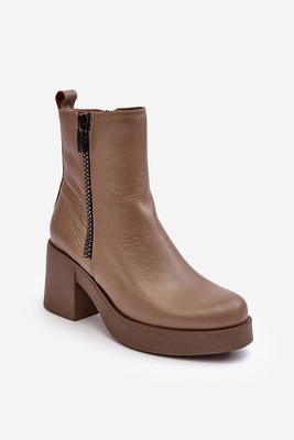 Bőr női sarkú bokacsizma Sötétbézs Lemar Leocera