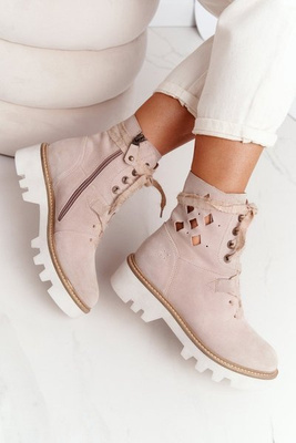 Fonott csizma tömbsarkú Maciejka 04937-03 bézs