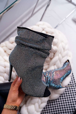 Lu Boo fekete tűsarkú csizma Zircon Halsey