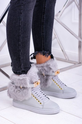 Lu Boo szürke csizma természetes szőrmével Gisele