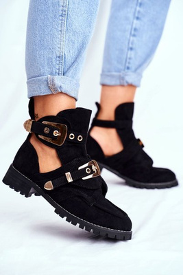 Női lapos sarkú velúr áttört csizma fekete árnyalatú
