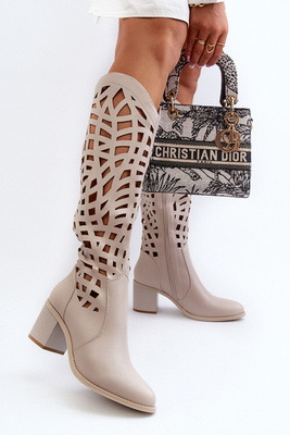 Zazoo 3403 áttört női csizma alacsony sarkú bézs
