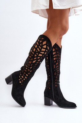 Zazoo 3427 női velúr cowboy csizma fekete