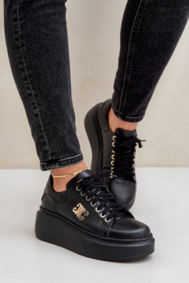 Női tornacipő vaskos talpon arany díszítéssel CheBello 4530 fekete