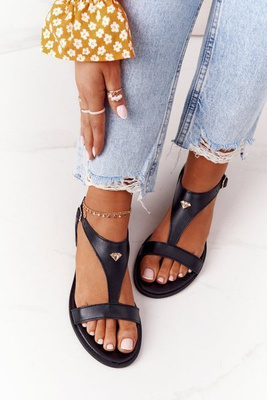 Elegáns velúr szandál flitterekkel Fekete Vitoria