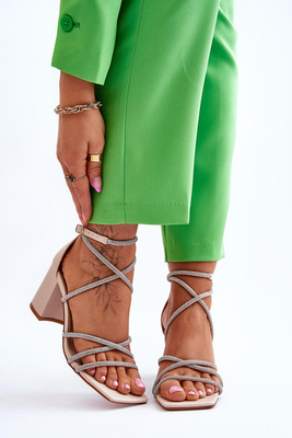 Bőr szandál strasszokkal Heels Beige Carlotta
